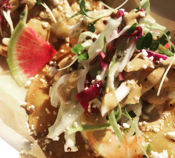 Follow the Burrow on a flatbed with the flashing neon lights to the delightful walk-up Taco Restaurant adjacent to the Satellite to find delicious house-made Mexican beef, pork, chicken, fish and vegetarian dishes that will delight everyone. There are even gluten-free options. Top your tacos at the fresh condiment bar and pair them with fresh squeezed limeade or horchata or a selection from the bottle shop next door. There is even a putting green as well as a dog friendly sidewalk patio. You never know what fun you will find!