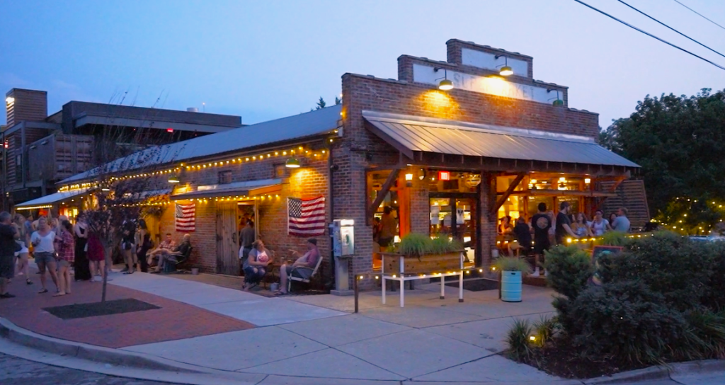 This dog-friendly complex features indoor and outdoor seating areas with a funky yet modern vibe coming from rustic huge open spaces reformed with salvaged materials from the original structure, a 1940's grocery. A favorite for both locals and visitors for over a decade for the amazing selection of wines, Southern Sweet Iced Tea, nearly 250 craft beers in addition to gose, cider, hard seltzer, hard kombucha and champagne splits, a full bar with a friendly staff, live music and a dog and family-friendly attitude. Known for its Sundown Screenings Movie Nights, Live Music and special Sunday Evening Live Bluegrass Jam filled with listening and dancing both inside and on the outside patio.