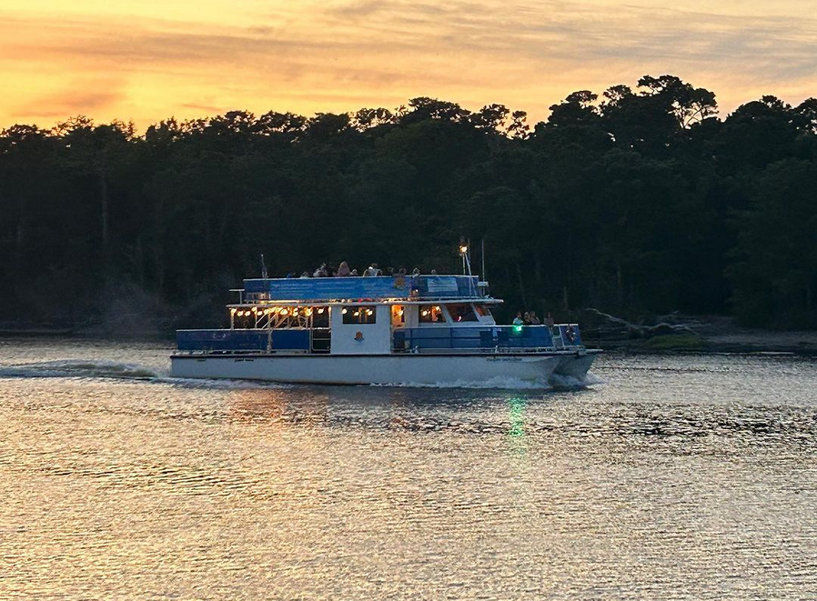 Enjoy a relaxing afternoon or sunset cruise down the Intracoastal Waterway. Departing from The Carolina Beach Marina, the double decker catamaran offers family-friendly narrated cruises with the sunset cruise returning with lights and festive dance music. They also offer an afternoon family-friendly Pirate Adventure cruise during summer. Leaving the Marina, the cruise follows the Intracoastal Waterway, going under the Snows Cut Bridge to Carolina Beach State Park and the Cape Fear River before it circles back docking at the Marina. All cruises offer beverages and light snacks for sale on board. The boat is also available for private cruises for up to 106 people